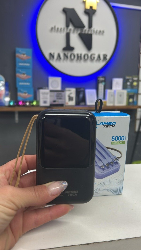 Cargador portatil LAMBO 4 TIPOS 5000mAh con pantalla COLOR DISPONIBLE NEGRO